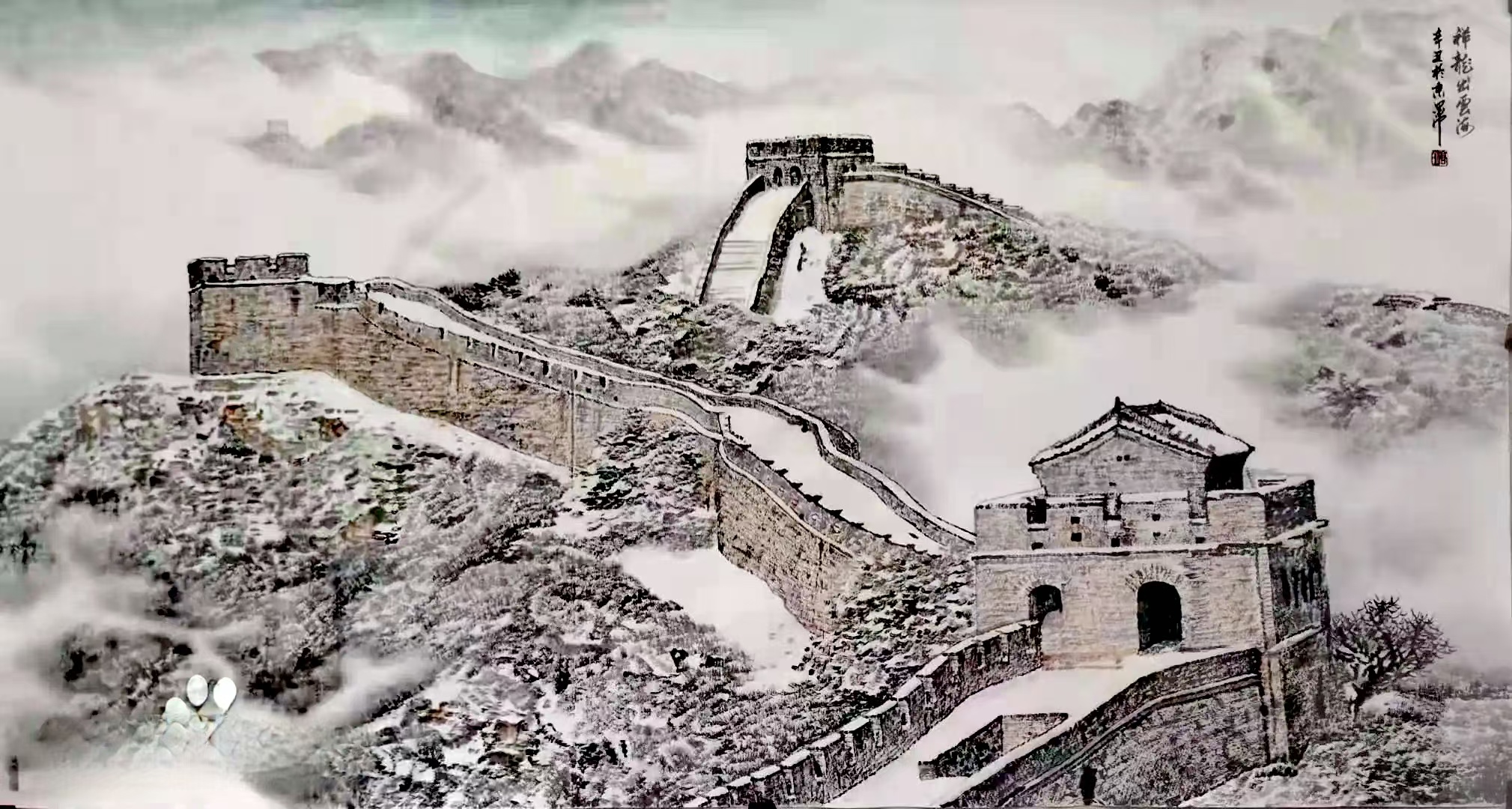 意象的突破性融合。在他的画作中,冰雪不再是“千山鸟飞绝”的寂寥象征,而是“忽如一夜春风来”的灵动诗篇;长城亦超越了“不到长城非好汉”的雄浑意象,成为“青山依旧在”的历史见证者。这种融合恰如阴阳相济,在冷峻与坚韧之间找到了完美的平衡点。